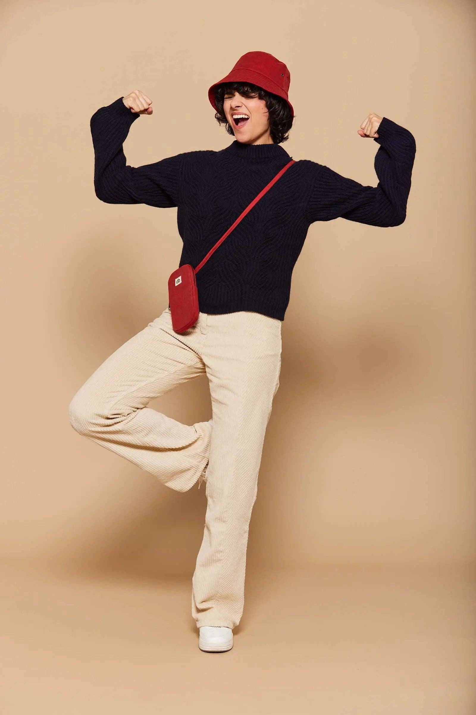 Its back pocket allows you to quickly grab your bank card, pen... To match with our bucket hat!