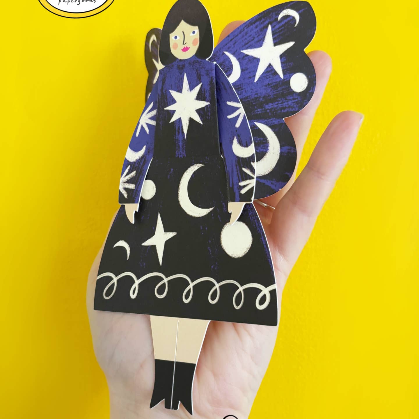 This decorative card makes the most magical and unique gift - created to sit on a coffee table, mantlepiece, or perhaps to perch on a bookshelf, though she can also stand, or hang on a loop of ribbon. Suitable for all occasions and ages - it’s as irresistible to children as it is to adults!