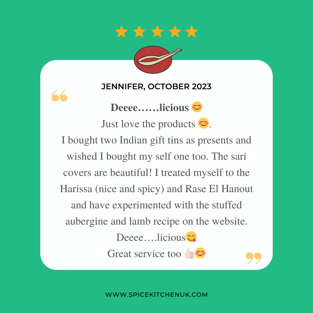Traditional stainless steel tin and spice spoon * Mini recipe book included