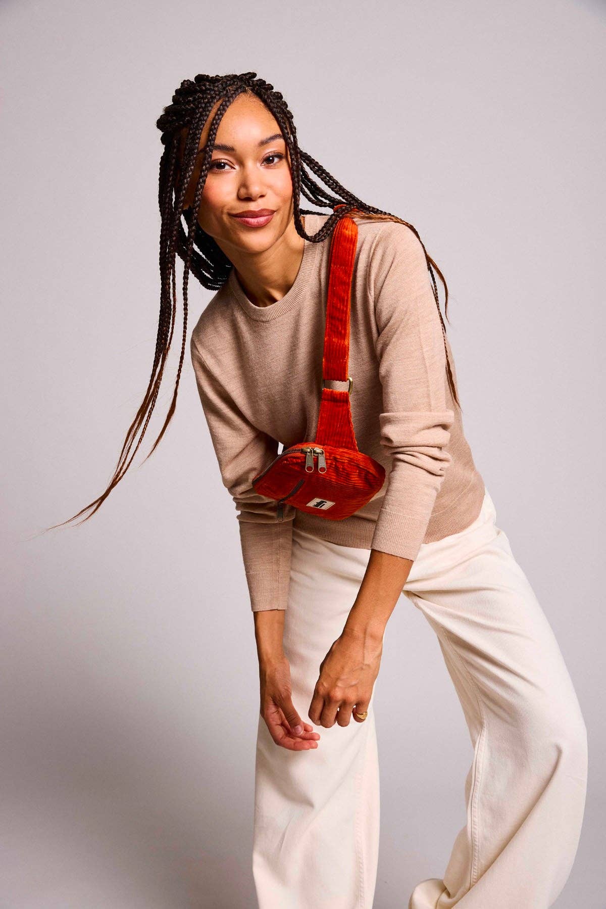 Its rectangular design gives it a minimalist and chic Nordic look. Its two exterior zippered pockets at the front and back allow you to store your essentials safely.