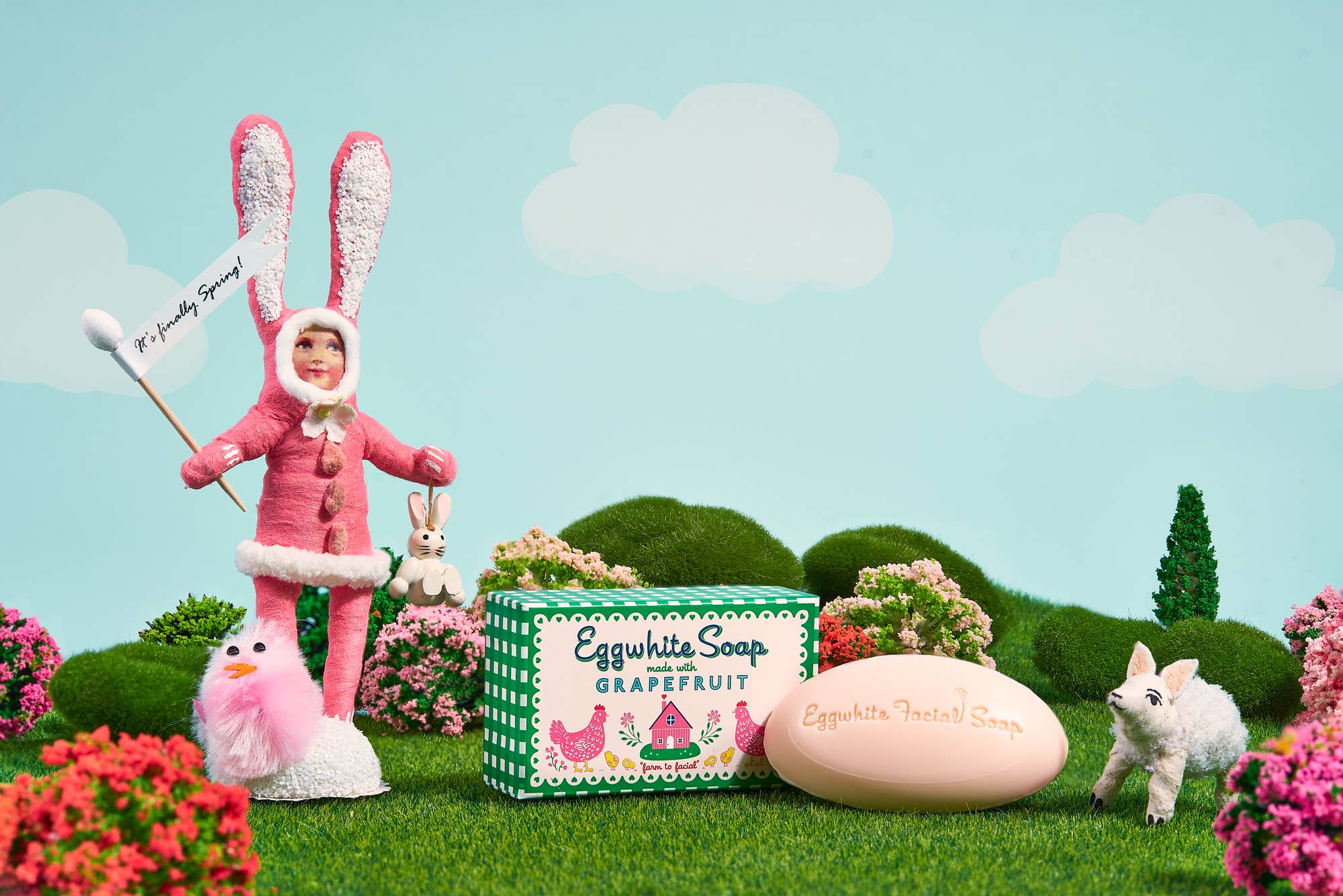 Farm-to-facial fun: Add some warm water to your Eggwhite bar to create a lovely, rich lather. Smooth over your face and neck. Let it work its magic for five minutes. Then, gently rinse off and pat dry. Enjoy the radiant glow!