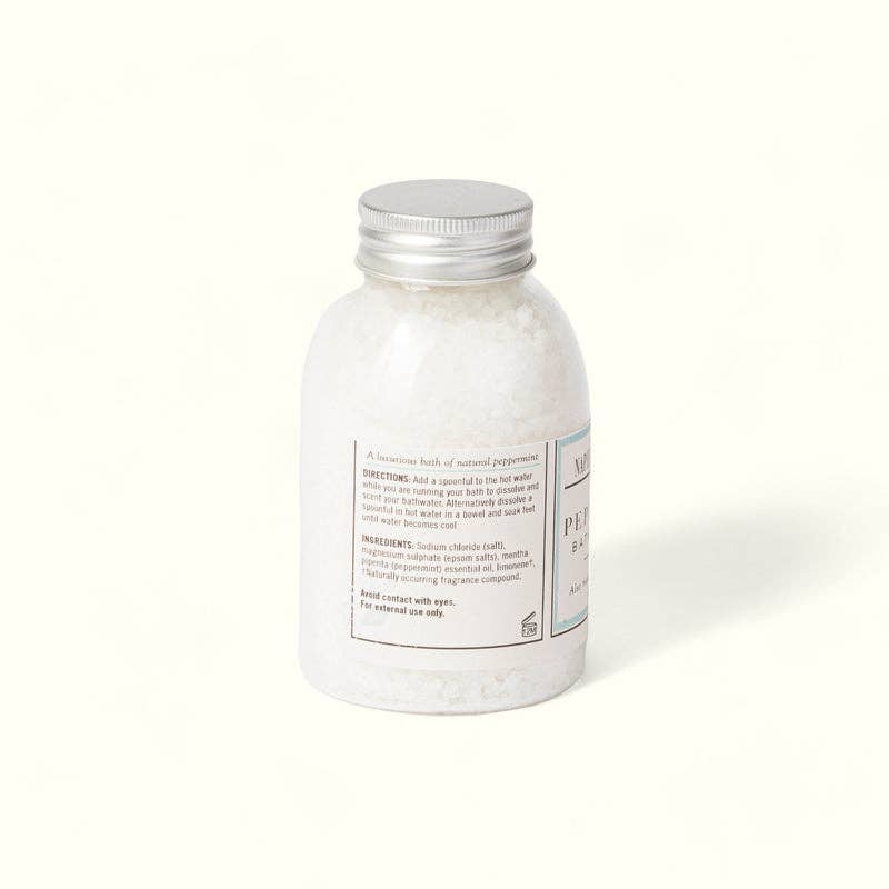 Sea salt, epsom salt and cooling refreshing peppermint essential oil to soften and condition your bath water.