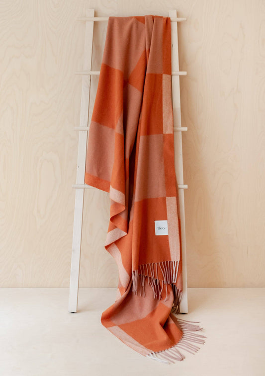 Cashmere & Merino Blanket in Apricot Checkerboard
