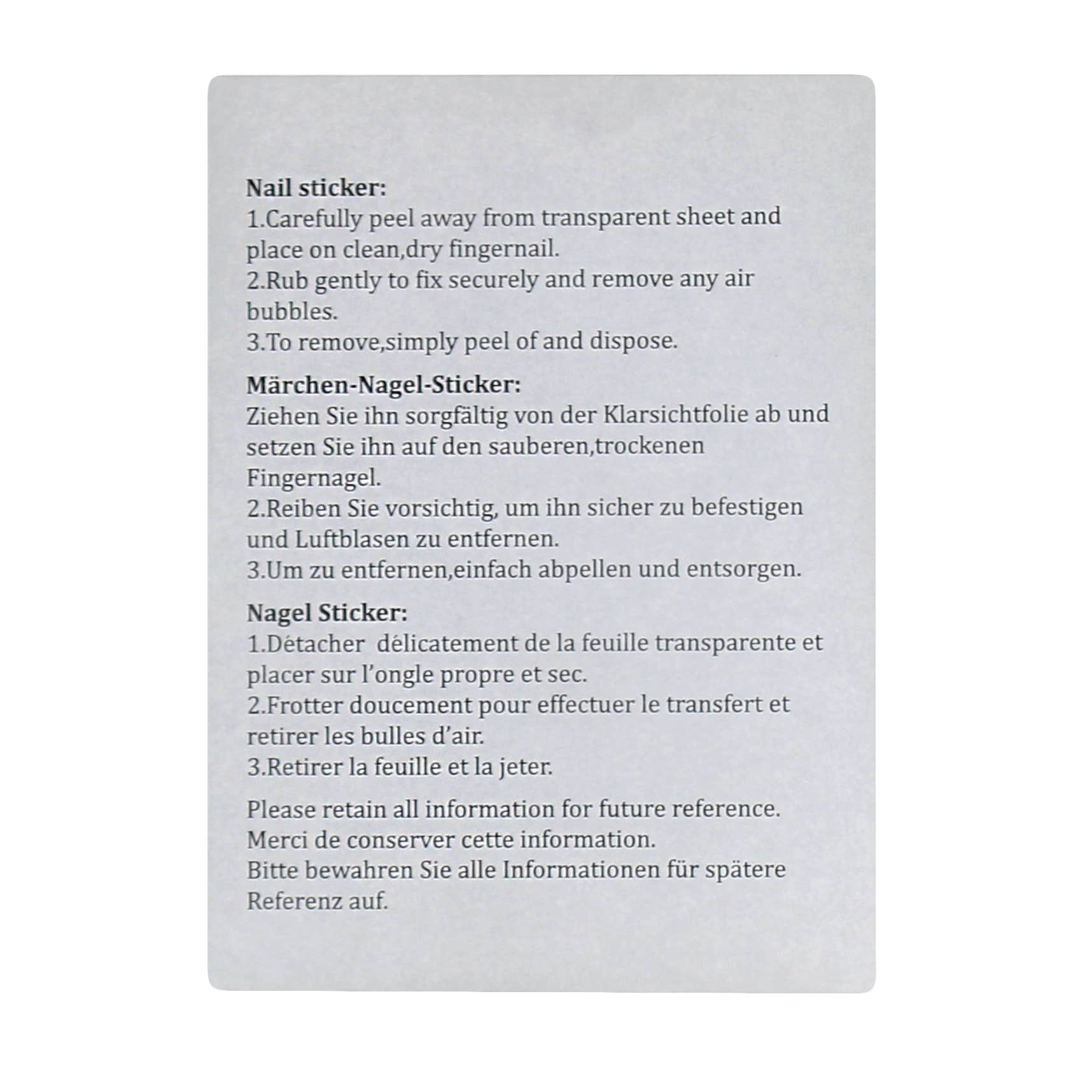 • Includes five sets of stickers of differing sizes to fit each of the average child's fingernails on one hand.