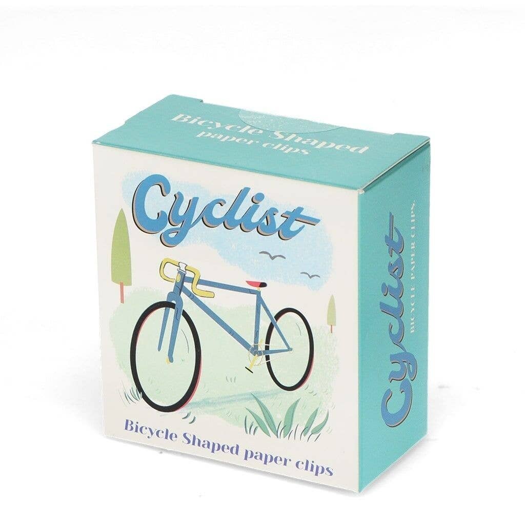 Box of 20 quirky bicycle shaped paper clips in four different colours.