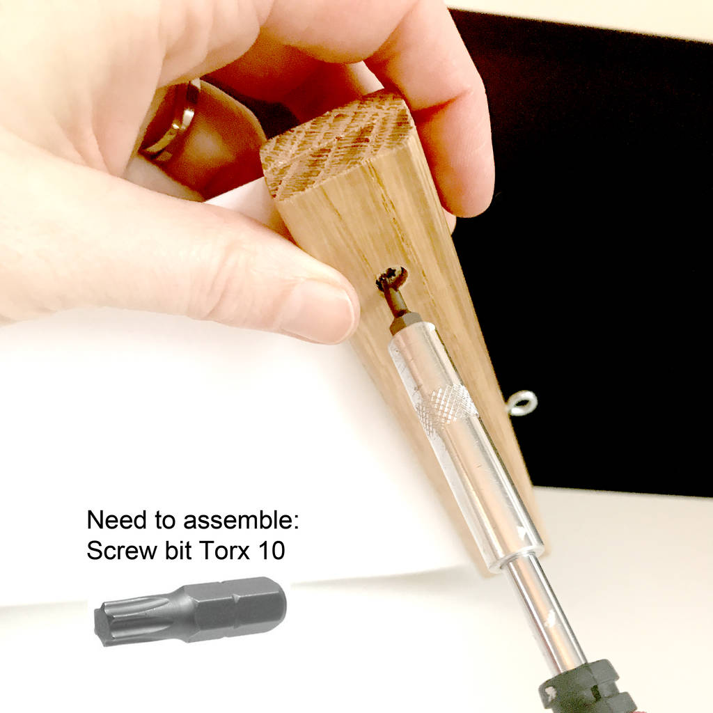 This handmade oak frame is designed to fit our wall height charts with one wooden bar at the top and one at the botton of the chart. The frames are easy to assemble using a screwdriver with bit Torx 10.