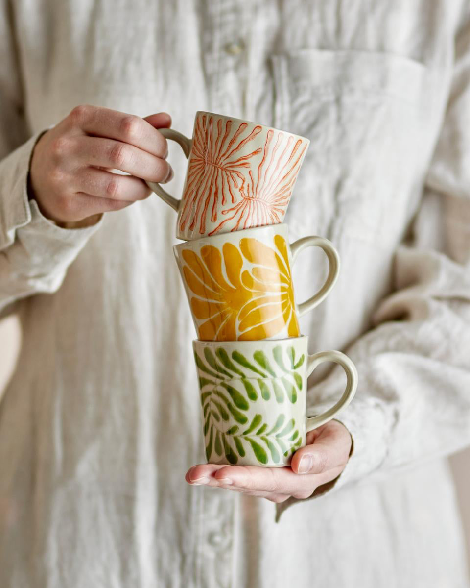 The Fauni Mugs by Creative Collection come with its own hand-painted pattern in warm, natural colours. The simple shape and decorative decoration bring a lively and unique look to the table.