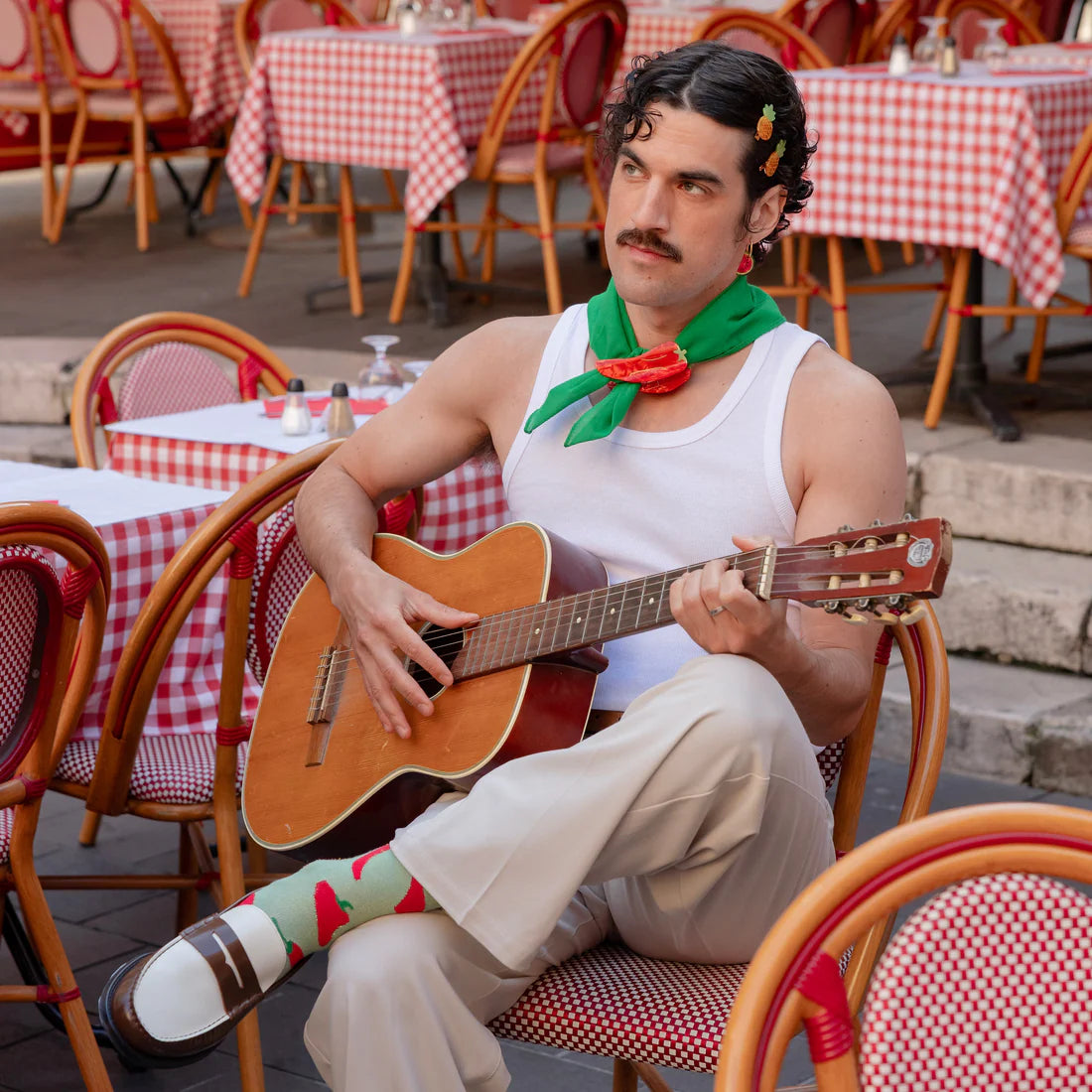 We're opting for a spicy style with these unisex socks featuring a red chili pepper pattern, highlighted by a green glitter background! A perfect combo to warm up our looks and add a little spice to our days.
