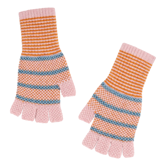 Tuck Stitch Fingerless Gloves | Angel Wing Pink & Grey
