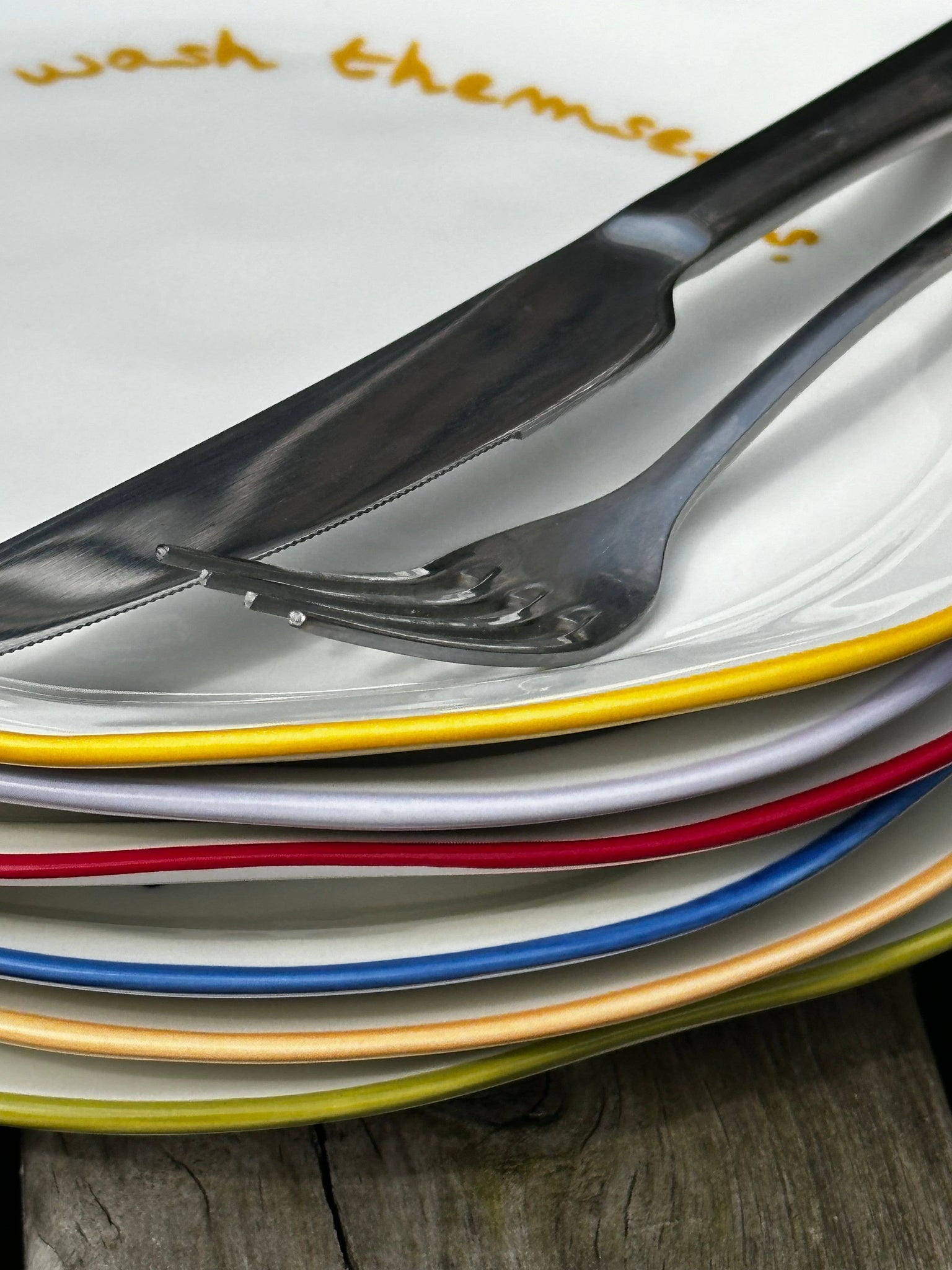 Make every meal a conversation starter with a statement plate, crafted from premium stoneware and adorned with bold slogans.