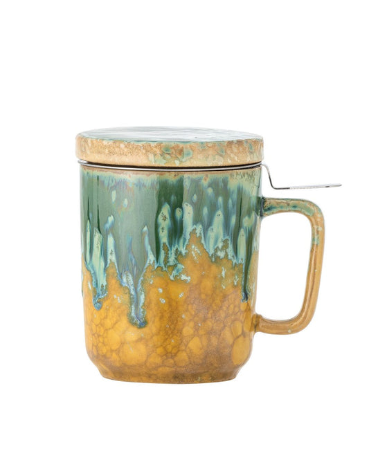Yuma Mug with Lid and Strainer | Green Stoneware