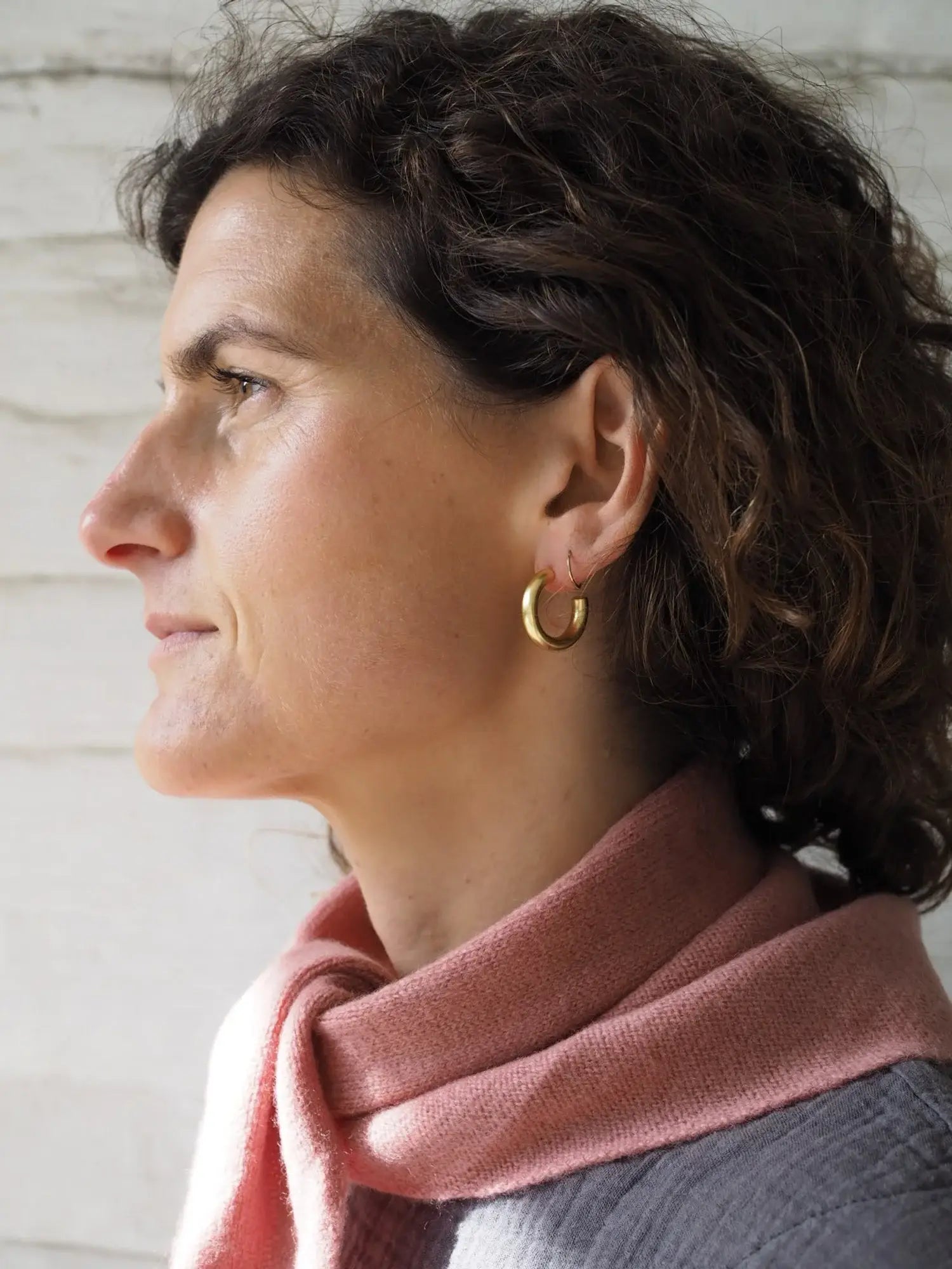 These hoops are handmade. The jewellers use brass wire and sheet to saw, drill, solder and file into individually made pieces, meaning no two will be completely identical. Roake chooses brass as a material, as the recycling process is less energy-intensive in comparison to other metals, and yields a smaller carbon footprint.