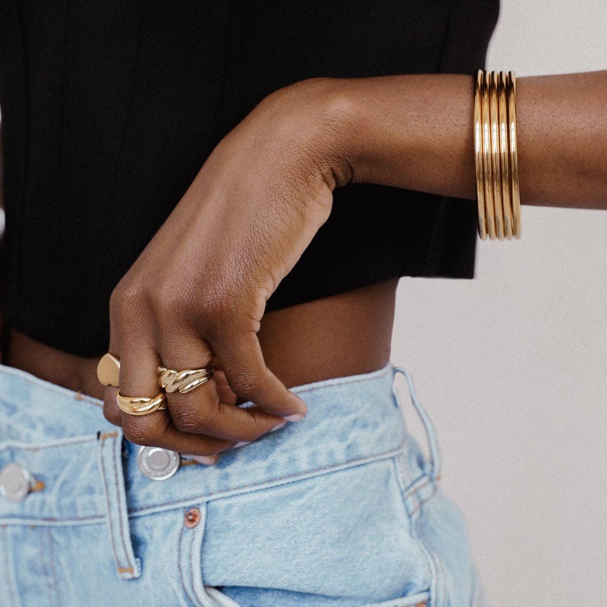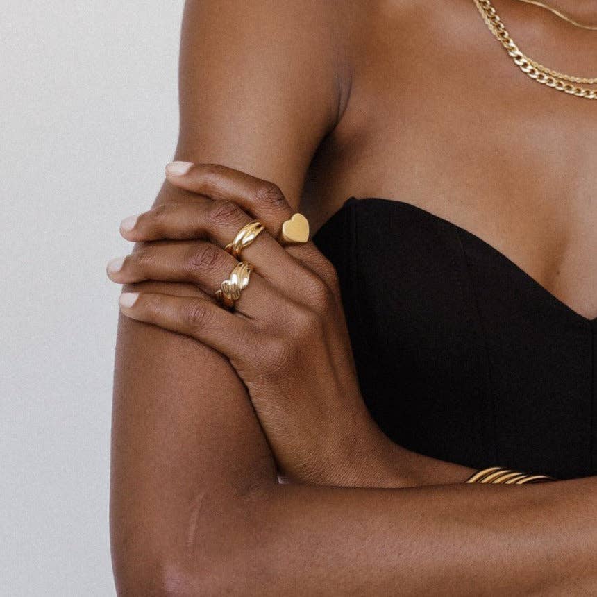 Hey Harper jewellery is crafted with highly resistant stainless steel and a 10x stronger coating process, with a 14k golden colour. This PVD coating is what makes their pieces daily-life resistant, the colour won't fade!