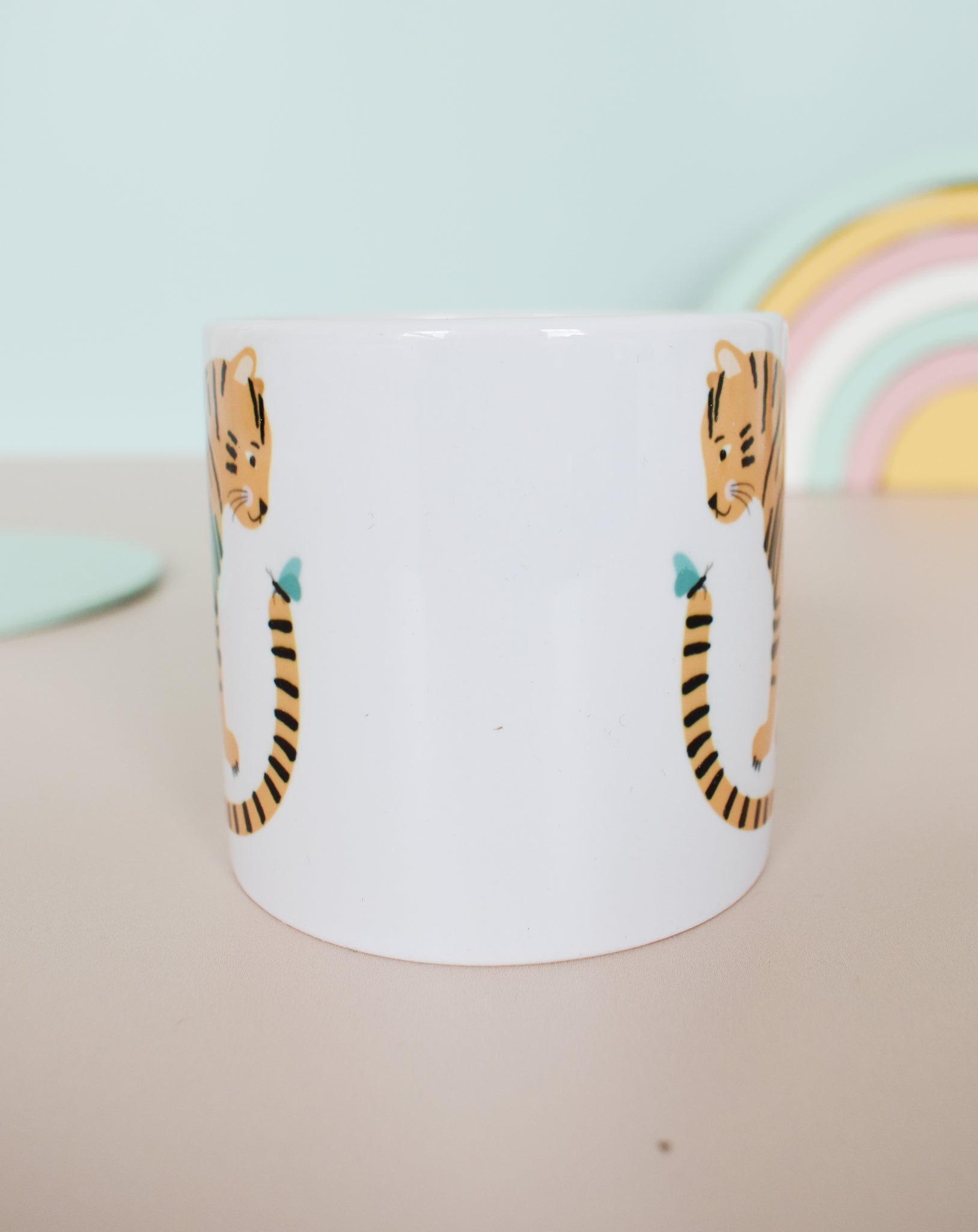 This friendly tiger mug would make a lovely gift for any child. Karin Åkesson's illustration of the tiger and butterfly is printed on both sides of the mug.