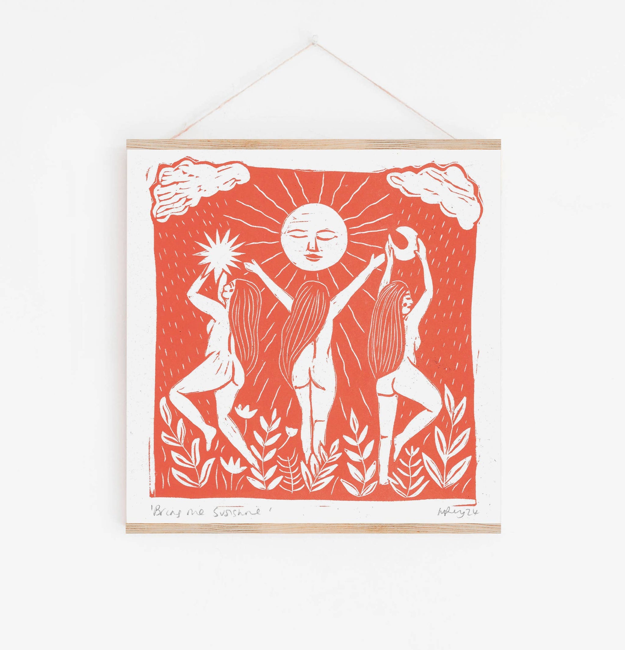 Colourful and contemporary riso graph print version of an original hand carved linoprint of the same name.