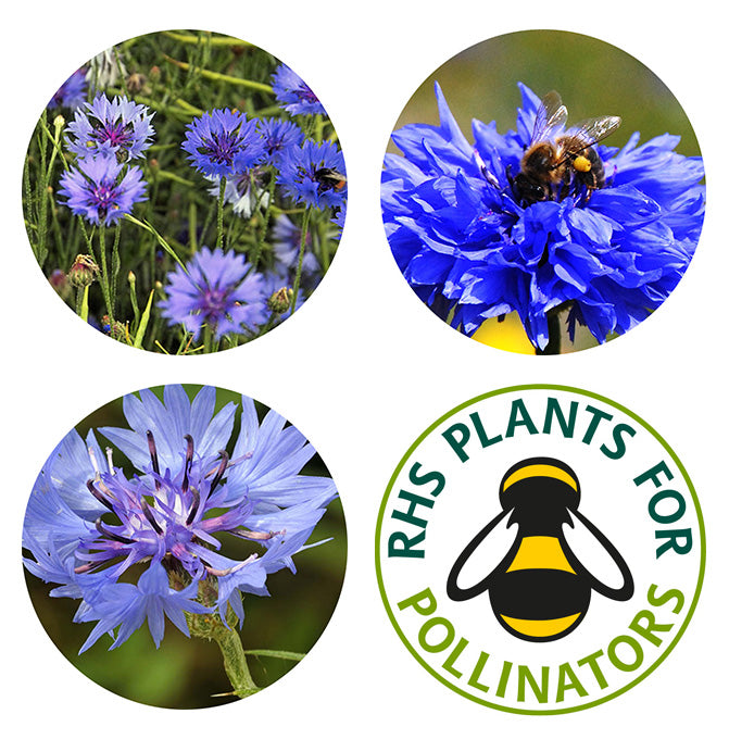 Brilliantly blue British cornflowers. These iconic and distinctive flowers are fantastic for bees, beetles, butterflies and moths, and are a simply marvellous addition to any wildlife garden. They are also edible with a cucumber-like taste, and can be used in salads, as a garnish or infused as a tea!