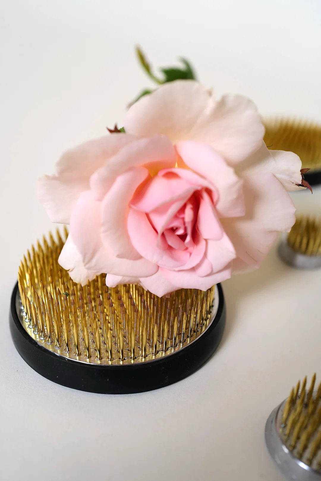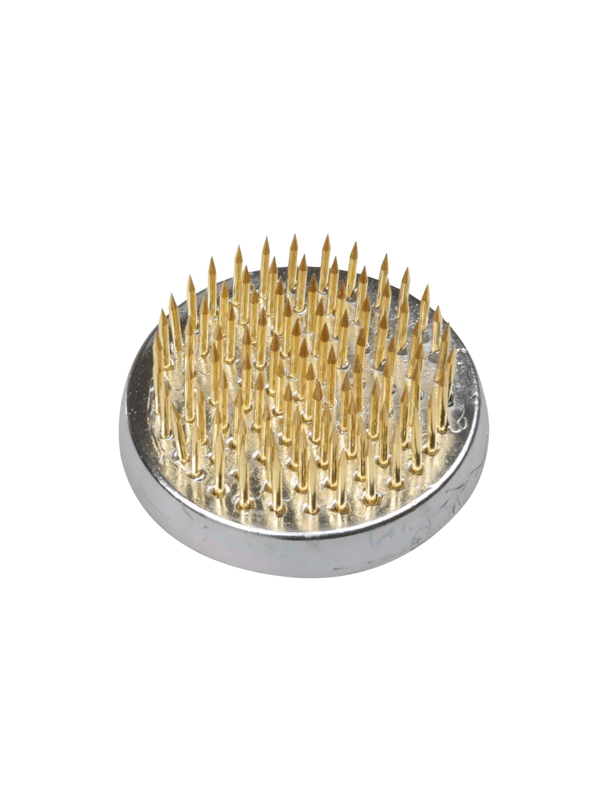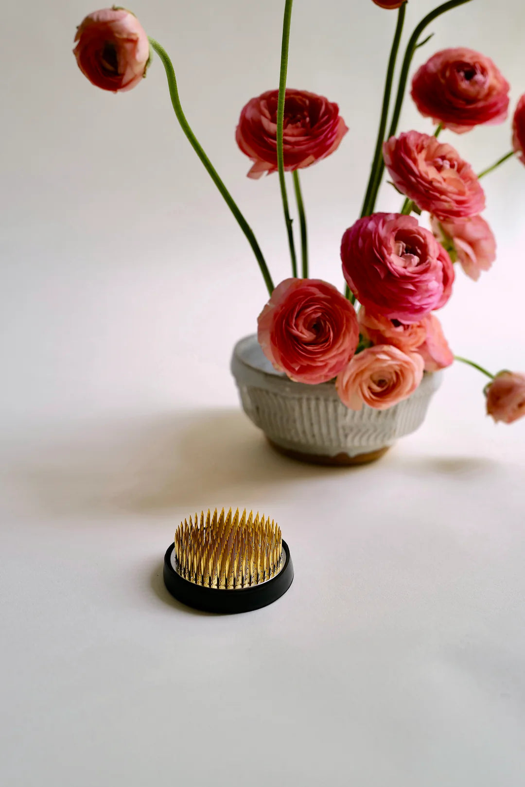 Used for ikebana flower displays, these Kenzan are becoming increasingly popular for western style flower arranging, doing away with foam completely. The brass pins are strong enough for woody material, as well as soft green and grass stems.