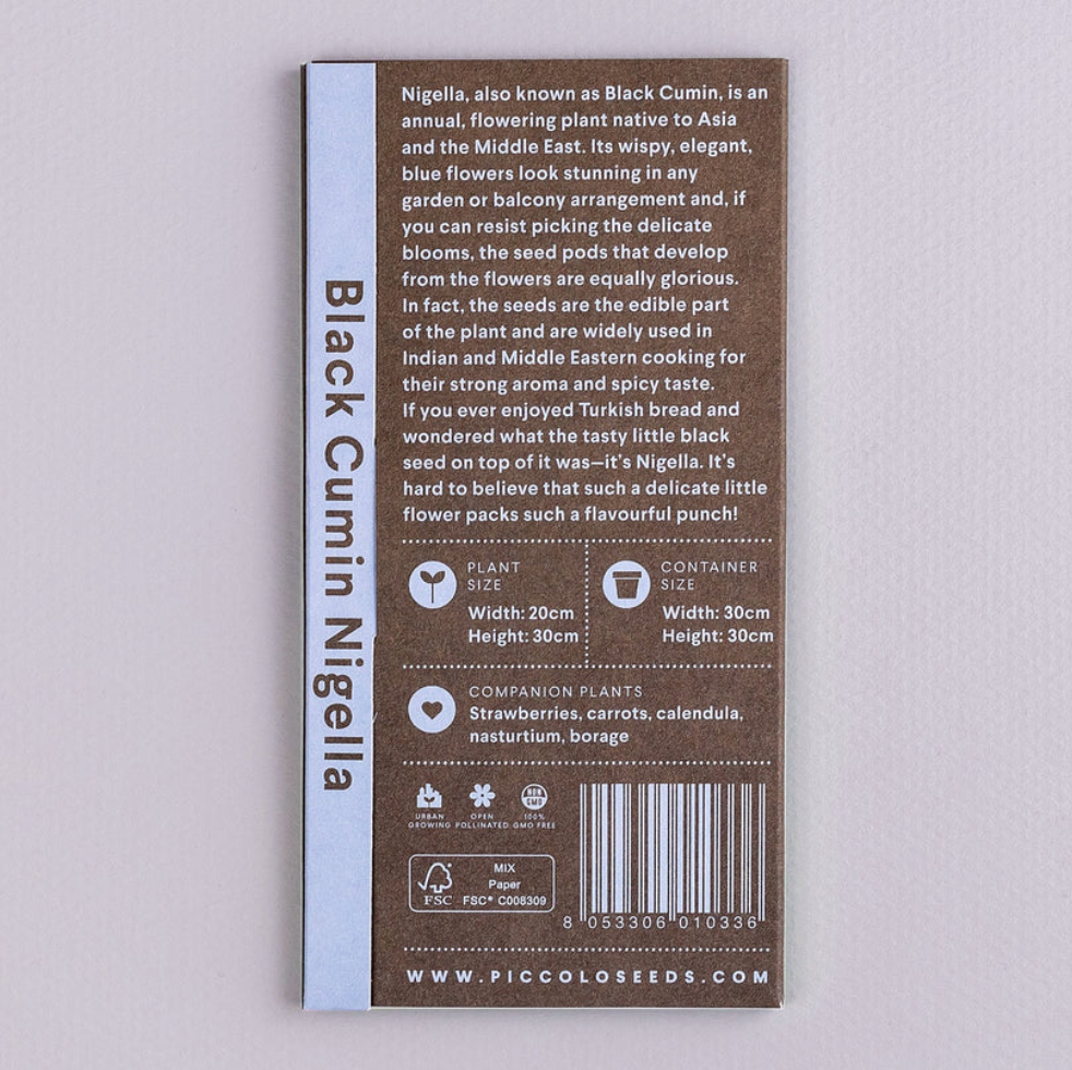 Nigella, also known as Black Cumin, is an annual, flowering plant native to Asia and the Middle East. Its wispy, elegant, blue flowers look stunning in any garden or balcony arrangement and, if you can resist picking the delicate blooms, the seed pods that develop from the flowers are equally glorious.