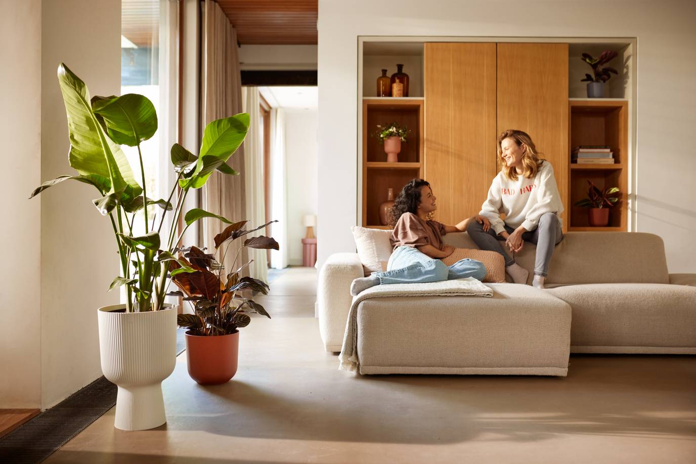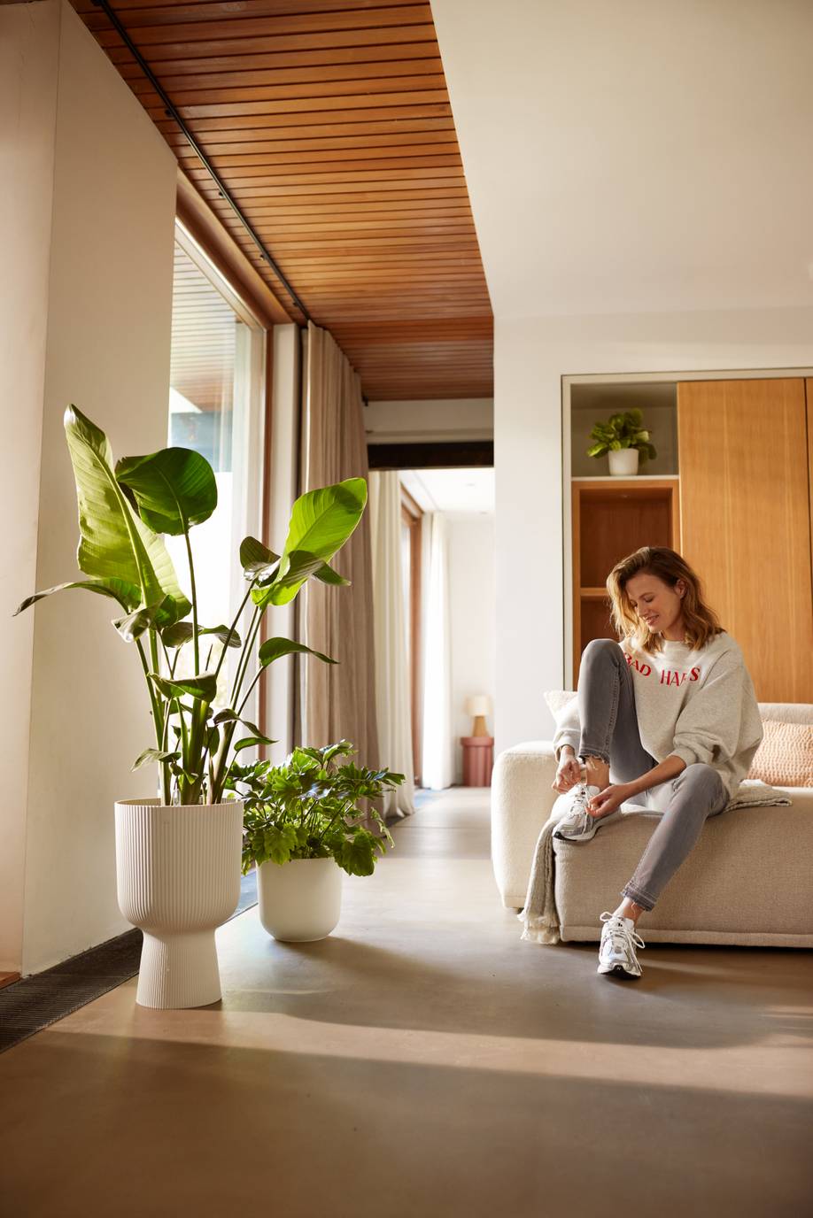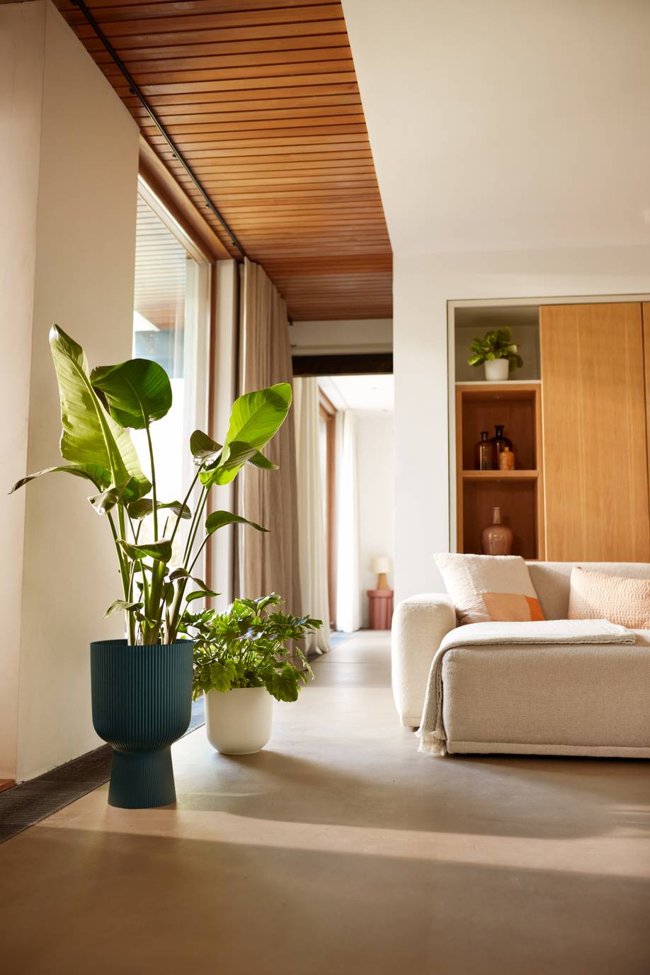 Put your plant on a pedestal - literally - with the vibes fold coupe! The shape is absolutely on-trend. It’ s a true eye-catcher! The fold coupe is available in several colours and sizes, so you can easily combine it with all kinds of plants and flowers. This makes it the ideal flower pot for any interior. It's made of high-quality materials, so it'll last for a long time. You can trust that our love for nature is reflected in how this pot was produced: it’s made from recycled plastic, produced with wind energy from Elho's own windmill, and it’s also fully recyclable. Happy you, happy Earth!