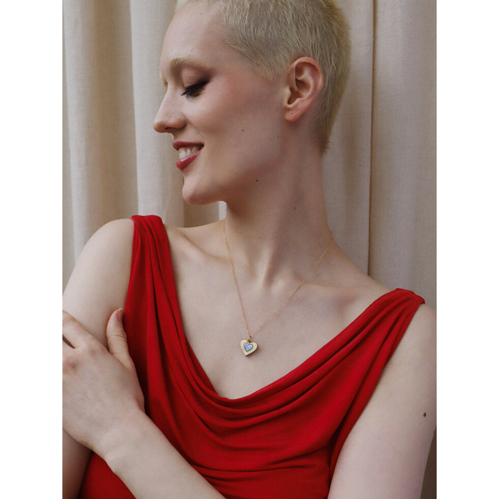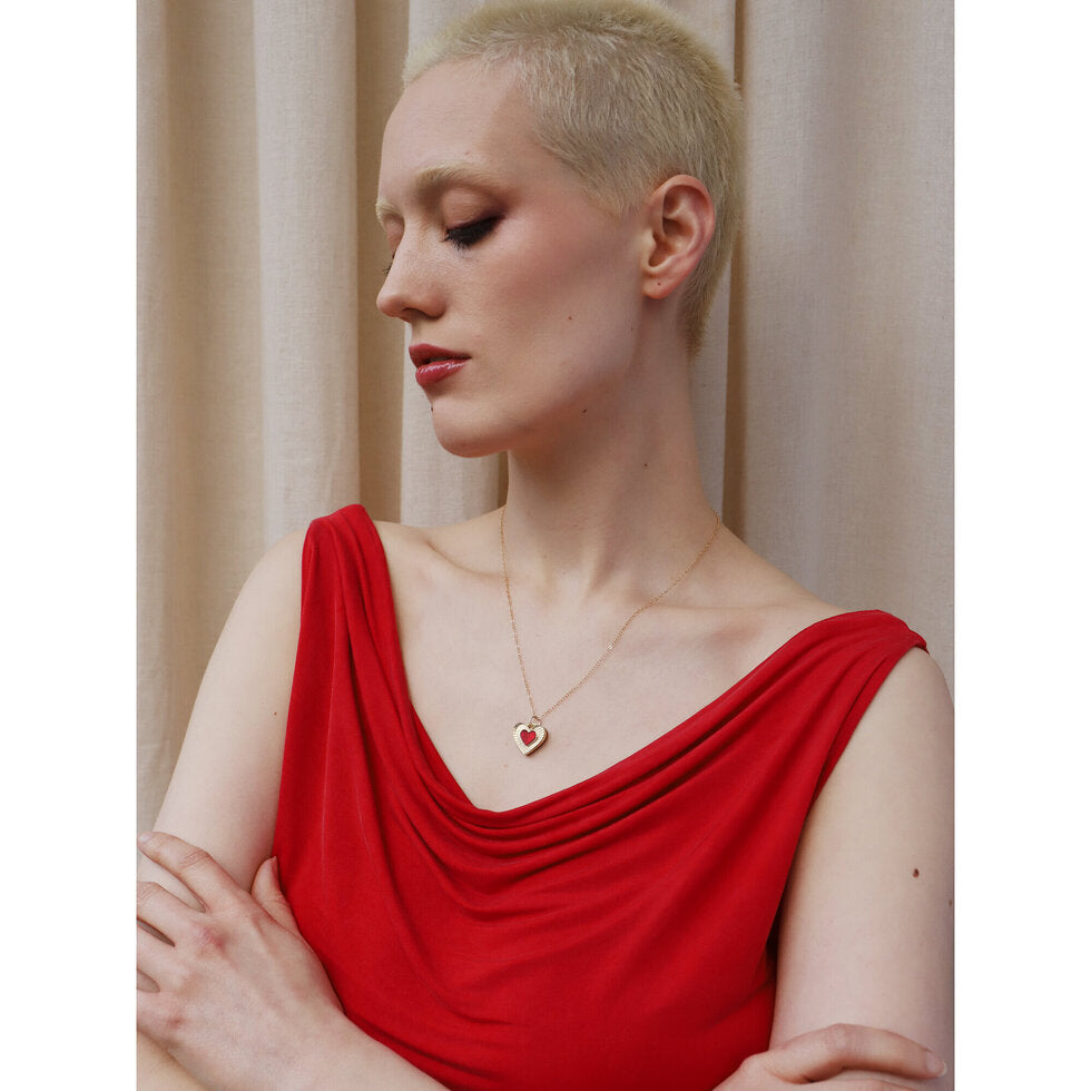 A little piece of love you can wear every day! This handcrafted heart-shaped necklace is made using FSC approved wood, iridescent mother of pearl or red and gold mirror acrylic.
