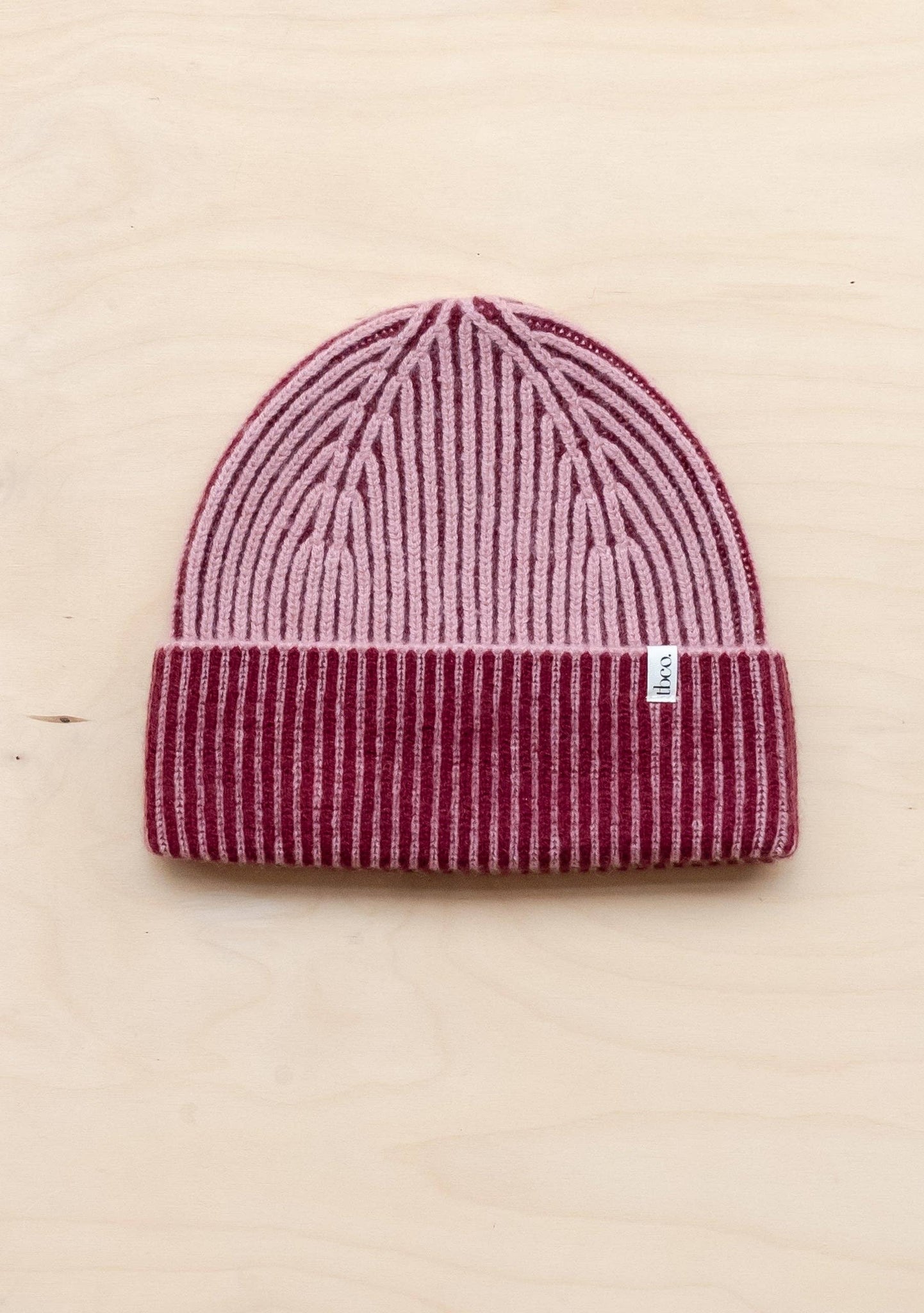 Cashmere & Merino Two-Tone Beanie in Pink