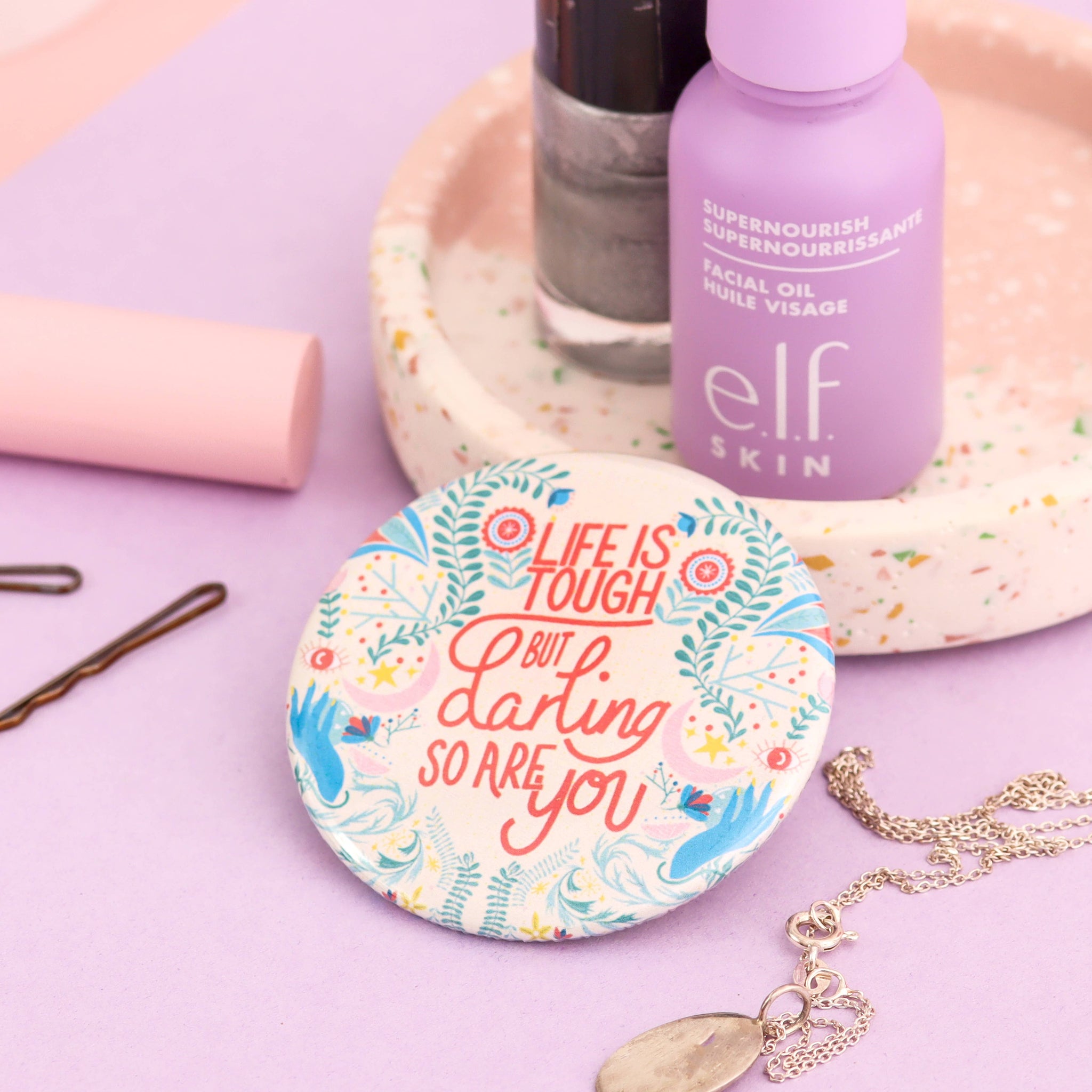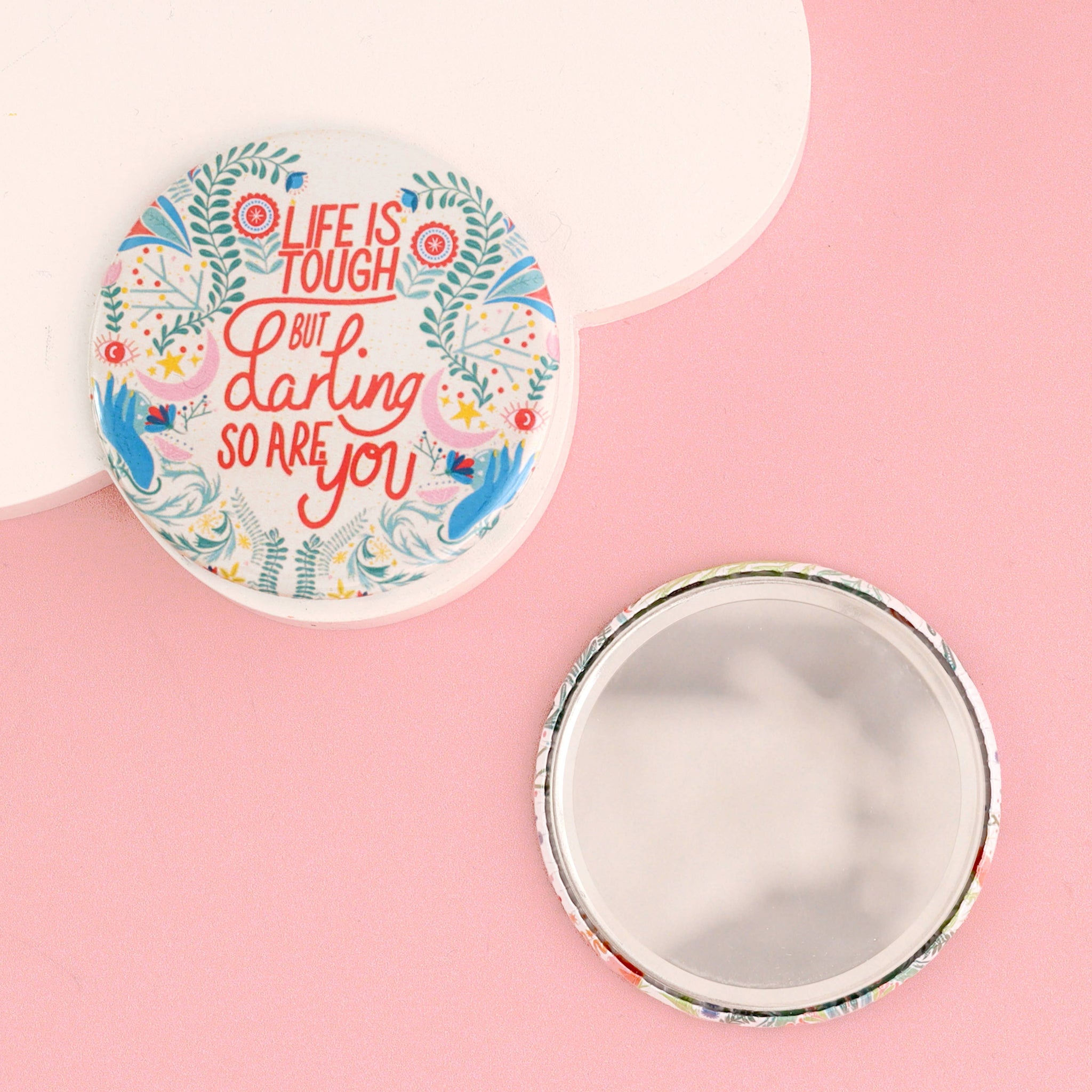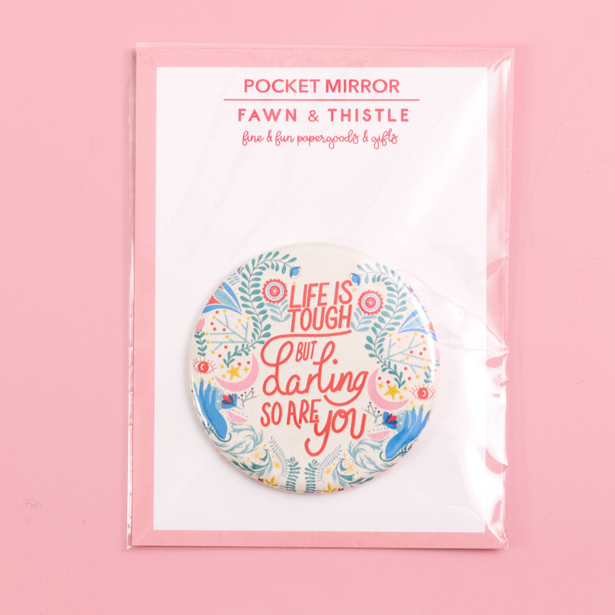 We all need a little reminder of our inner strength form time to time. The positive affirmation "Life is tough, but darling so are you" is surrounded by folk art inspired florals and foliage to complete the pretty design.