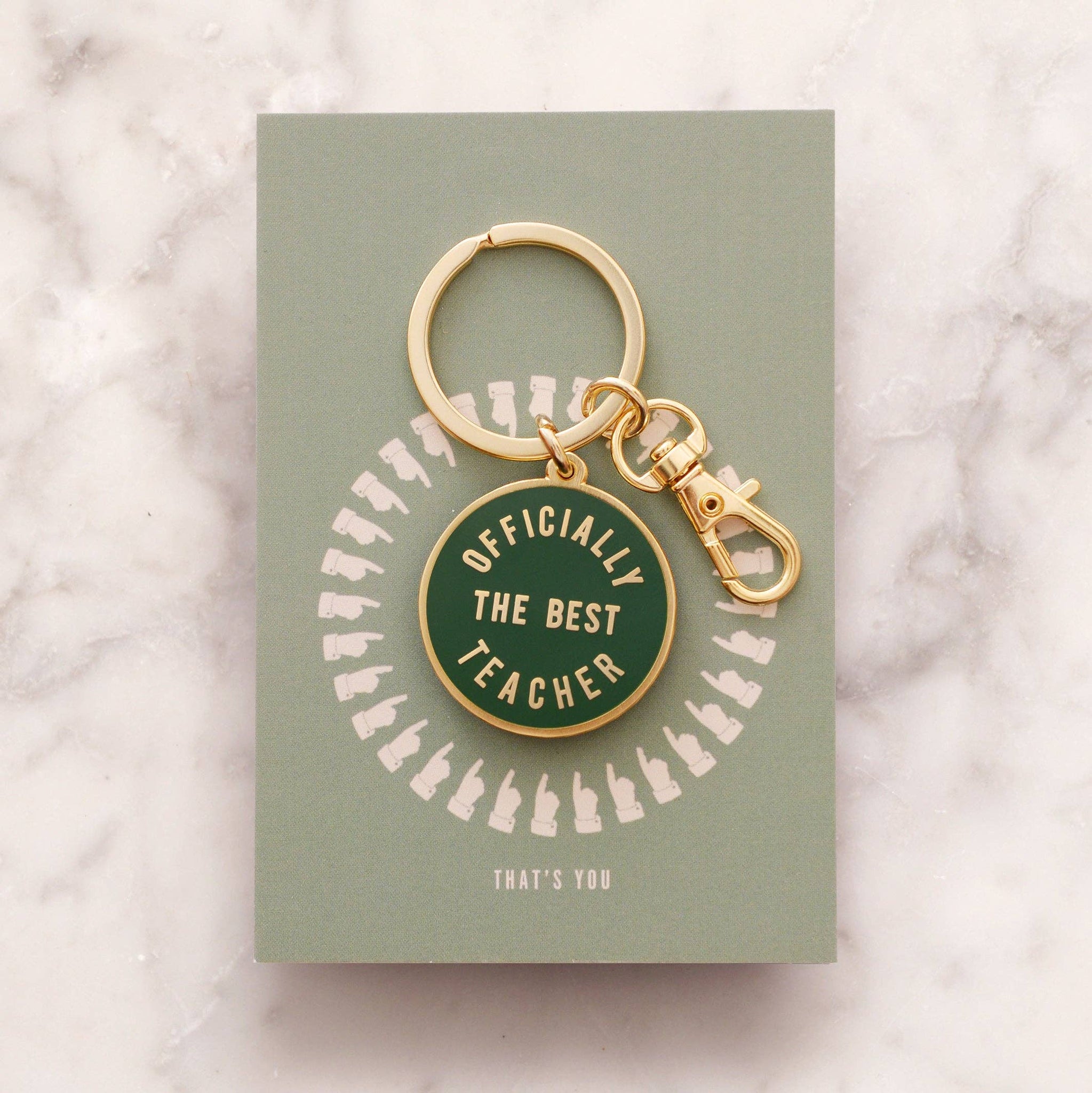 A lovely shiny keychain, featuring 'Officially the Best Teacher' design.