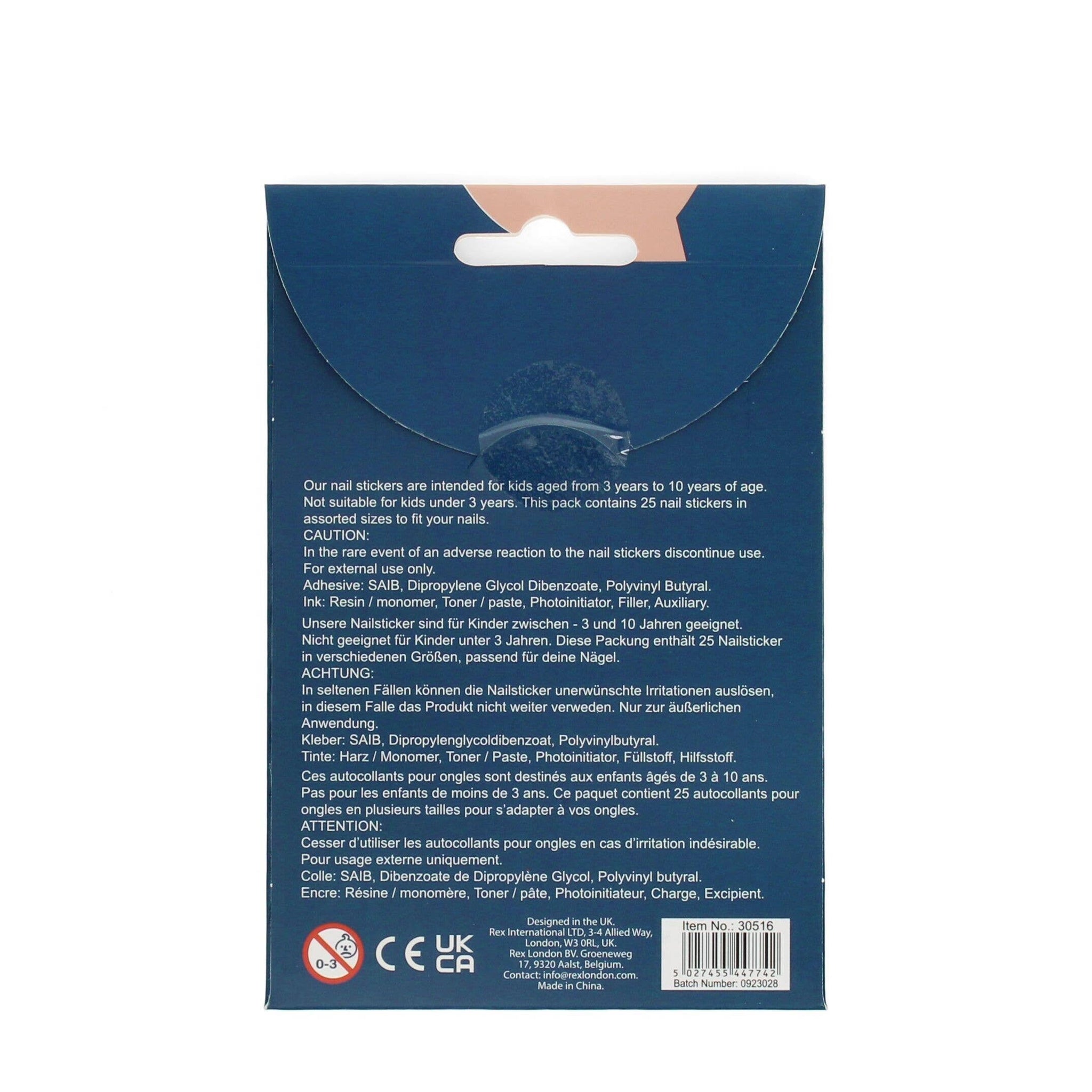 • Includes five sets of stickers of differing sizes to fit each of the average child's fingernails on one hand.