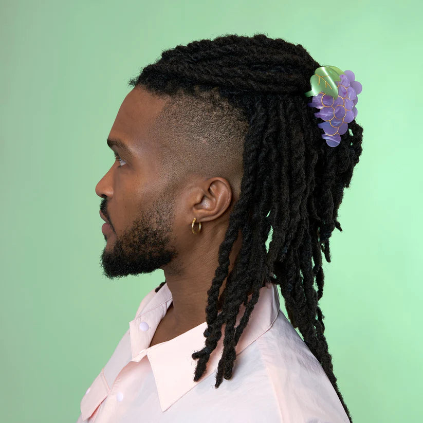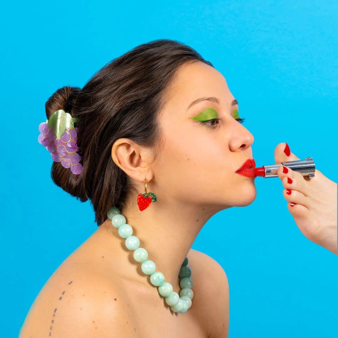 A gorgeous bunch of purple grapes as a hair clip, in shades of iridescent lilac and green. We love the romantic yet vintage feel of this fruity hair gem, with its details engraved in gold ink!