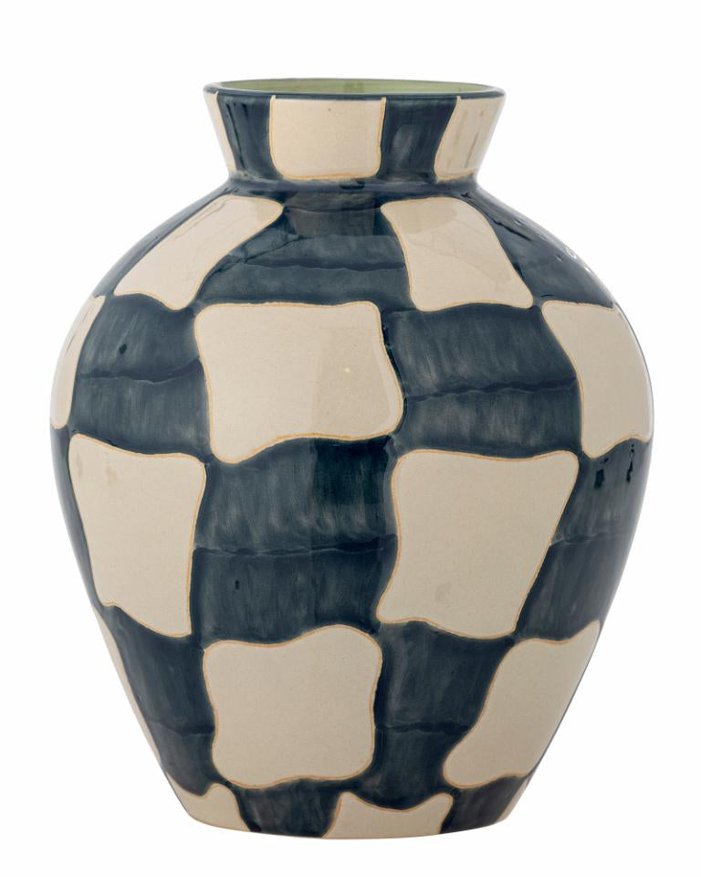 Stunning Check Vase by Bloomingville. Made of stoneware and hand-painted with a graphic pattern in blue and light shades.