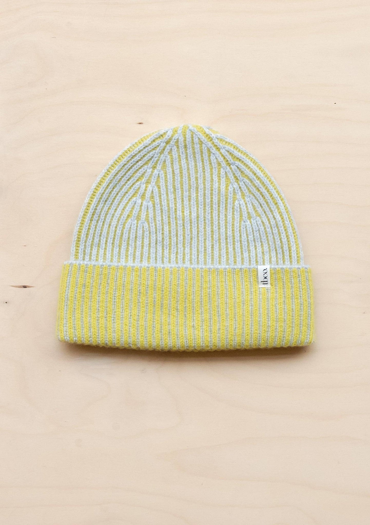 This TBCo Beanie is crafted from a luxurious blend of soft cashmere and insulating merino wool. The lime colour is accented by contrasting grey stripes. This fibre combination offers exceptional warmth without compromising breathability, a natural feature of wool that synthetic materials can't match, ensuring you stay comfortable even on the coldest days. The thick yarn provides a chunkier look with a gorgeous texture.