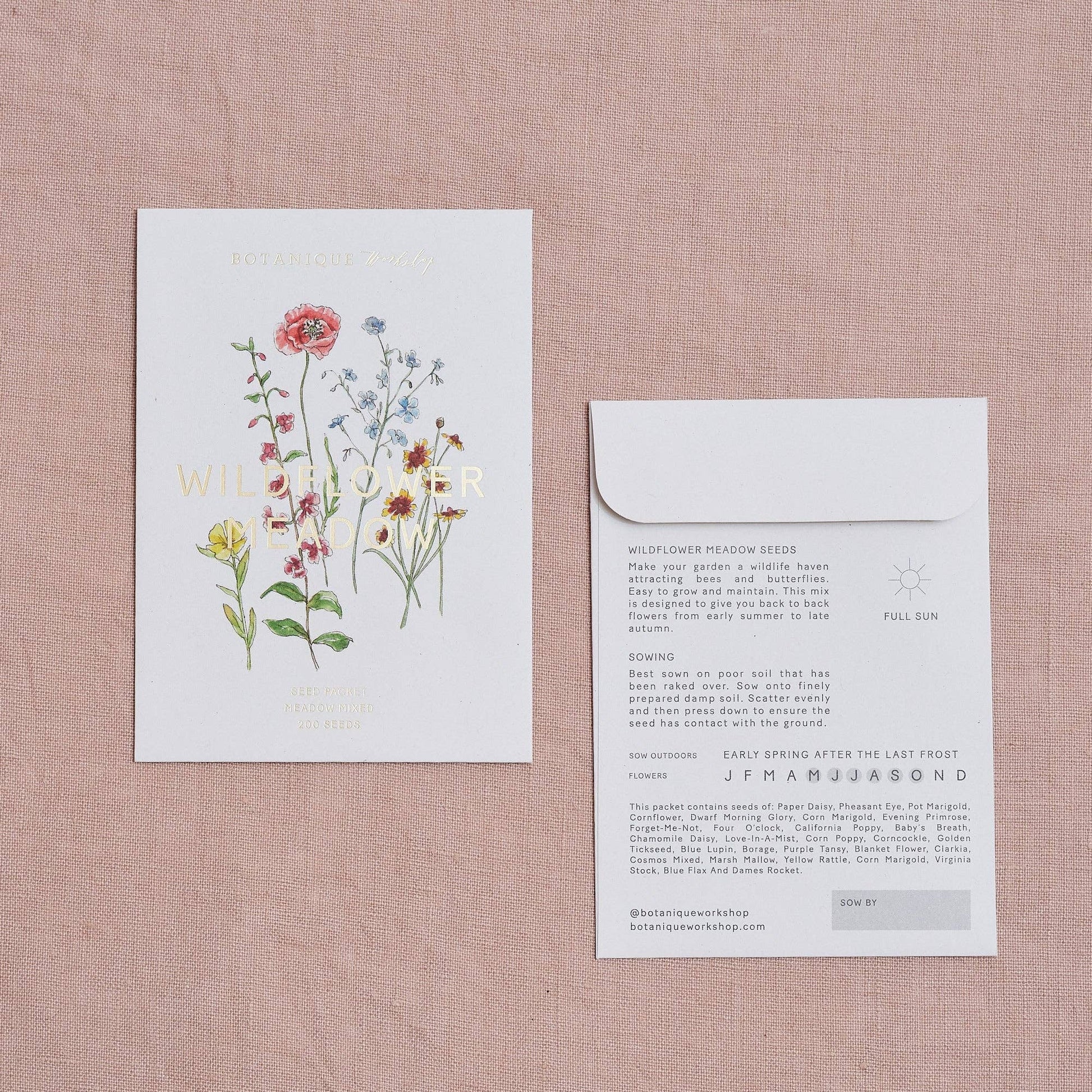Grow your own flowers with these beautifully packaged Bee- Friendly Wildflower Meadow seeds. Our seeds are grown in the UK and packed by hand in our London workshop. Botanical Illustrations are by British artist Annie Broughham.