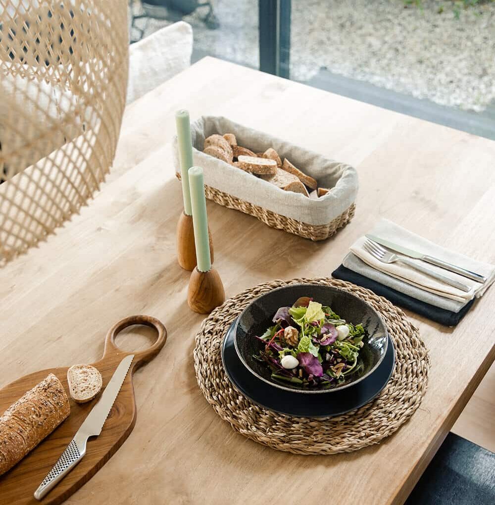 All reclaimed teak (teak root) kitchenware is food safe. For optimal usage please follow the care instructions below.