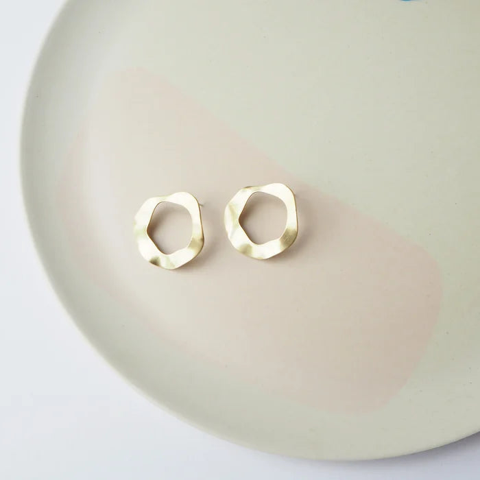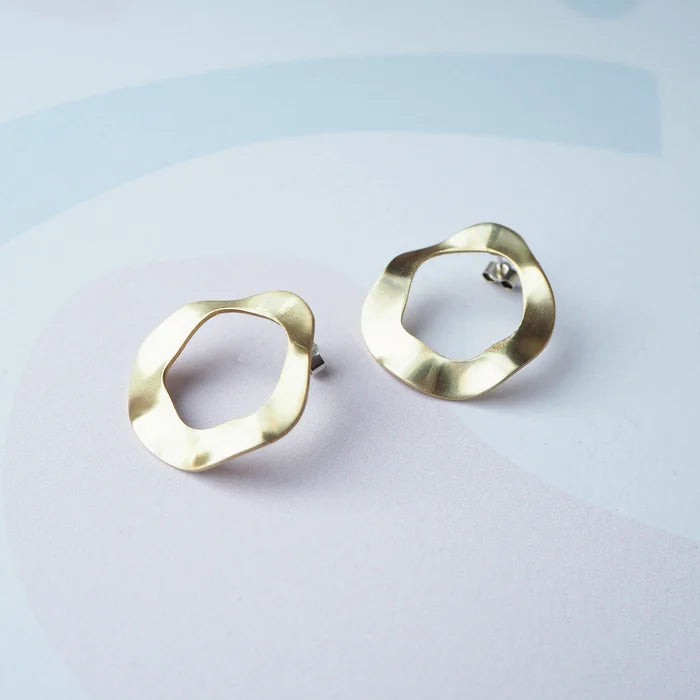 Wavy shaped semi statement studs. Clean, beautiful, sculptural, minimal style.