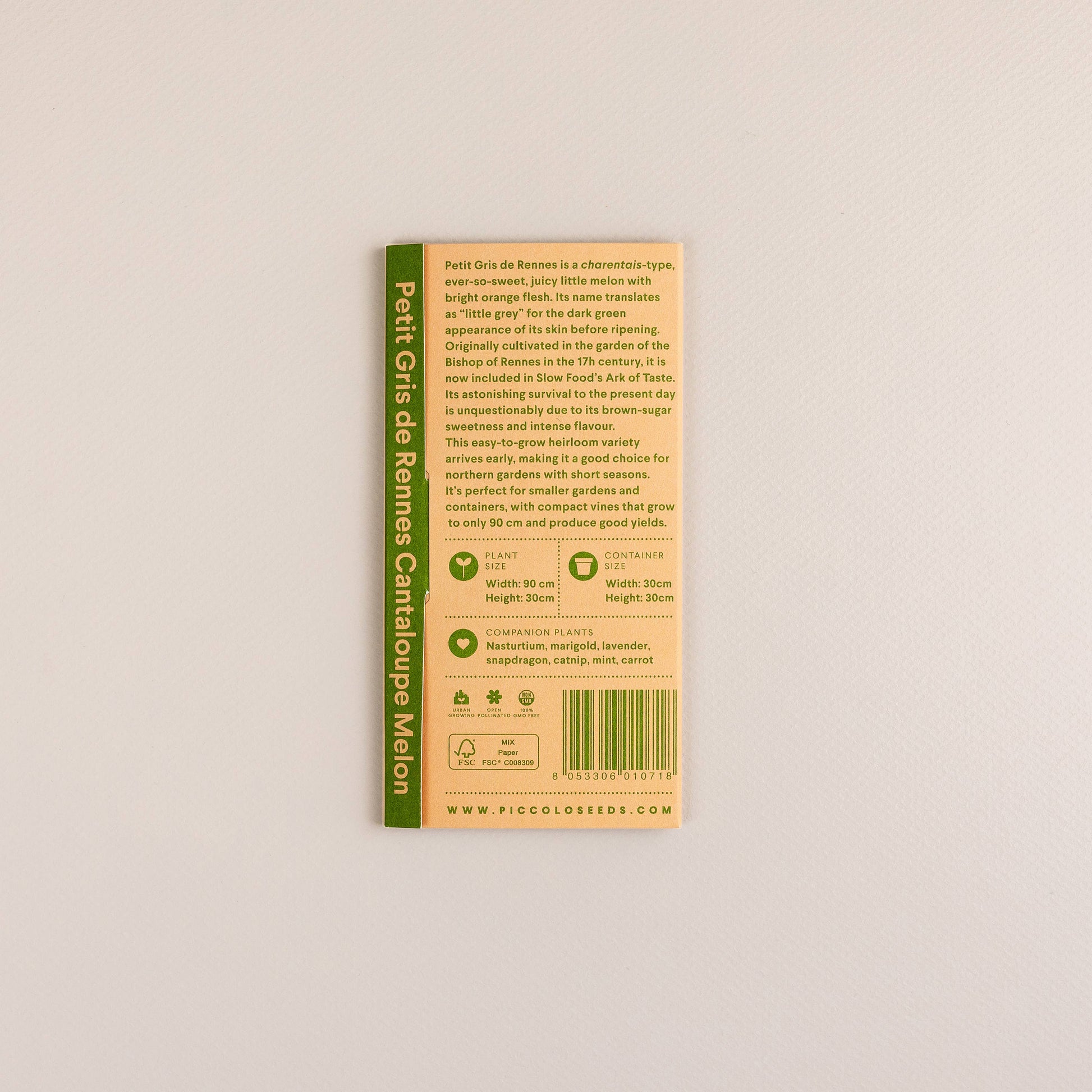 Petit Gris de Rennes is a charentais-type, ever-so-sweet, juicy little melon with bright orange flesh. Its name translates as “little grey” for the dark green appearance of its skin before ripening. Originally cultivated in the garden of the Bishop of Rennes nearly four hundred years ago, it is now included in Slow Food’s Ark of Taste. Its astonishing survival to the present day is unquestionably due to its brown-sugar sweetness and intense flavour, making it la crème de la crème of French melons. This easy-to-grow heirloom variety arrives early, making it a good choice for northern gardens with short seasons. It’s perfect for smaller gardens and containers, with compact vines that grow to only 90 cm and produce good yields.